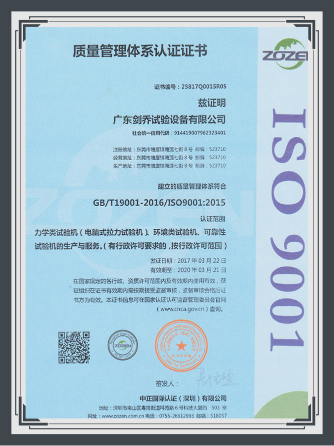 廣東劍喬試驗設(shè)備有限公司 (品牌名:劍喬儀器) 是專業(yè)從事振動及環(huán)境試驗設(shè)備研發(fā)、生產(chǎn)、銷售的大型生產(chǎn)廠家,生產(chǎn)總部設(shè)在東莞市塘廈鎮(zhèn),研發(fā)生產(chǎn)基地達10000㎡,并在蘇州吳中設(shè)有2000㎡的分工廠,主營恒溫恒濕試驗箱、可程式恒溫恒濕機、冷熱沖擊試驗箱、高低溫試驗箱、三綜合試驗箱、電動振動臺、振動試驗機等產(chǎn)品。公司擁有先進的技術(shù)研發(fā)團隊、專業(yè)的生產(chǎn)銷售團隊及完善的全國售后服務(wù),高級技術(shù)人才數(shù)十名,并在全國聘請數(shù)位高級研發(fā)工程師,銷售工程師,形成了具有創(chuàng)新思維的梯隊人才結(jié)構(gòu),營銷網(wǎng)絡(luò)覆蓋了全國絕大多數(shù)大、中型城市。劍喬近20年來已為數(shù)十家百強企業(yè)11289+家終端客戶提供優(yōu)質(zhì)的...【詳細】