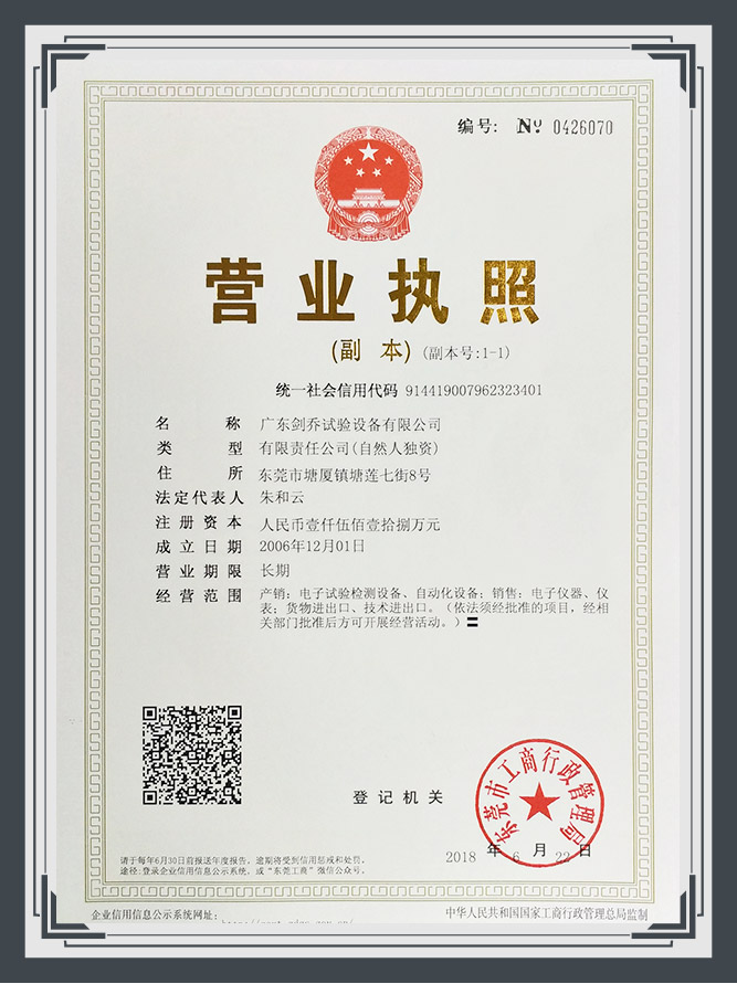 • 國家級高新技術(shù)企業(yè)證書、中國(試驗測試儀器)十佳品牌。